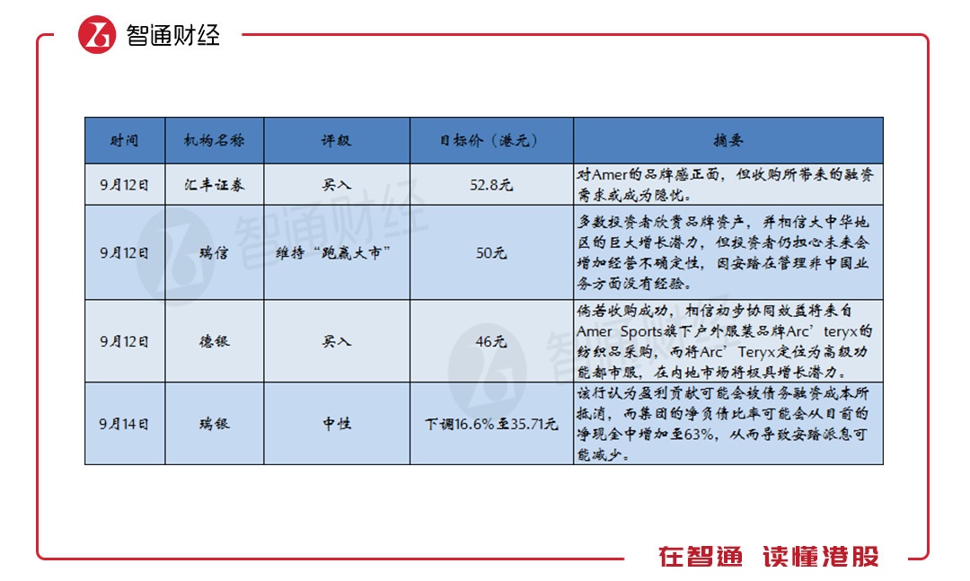 根据汇丰证券的研究报告,安踏现时拥有净现金11亿欧元,收购涉资47亿欧元,如果安踏收购亚玛芬51%股权,需额外融资100亿元人民币。