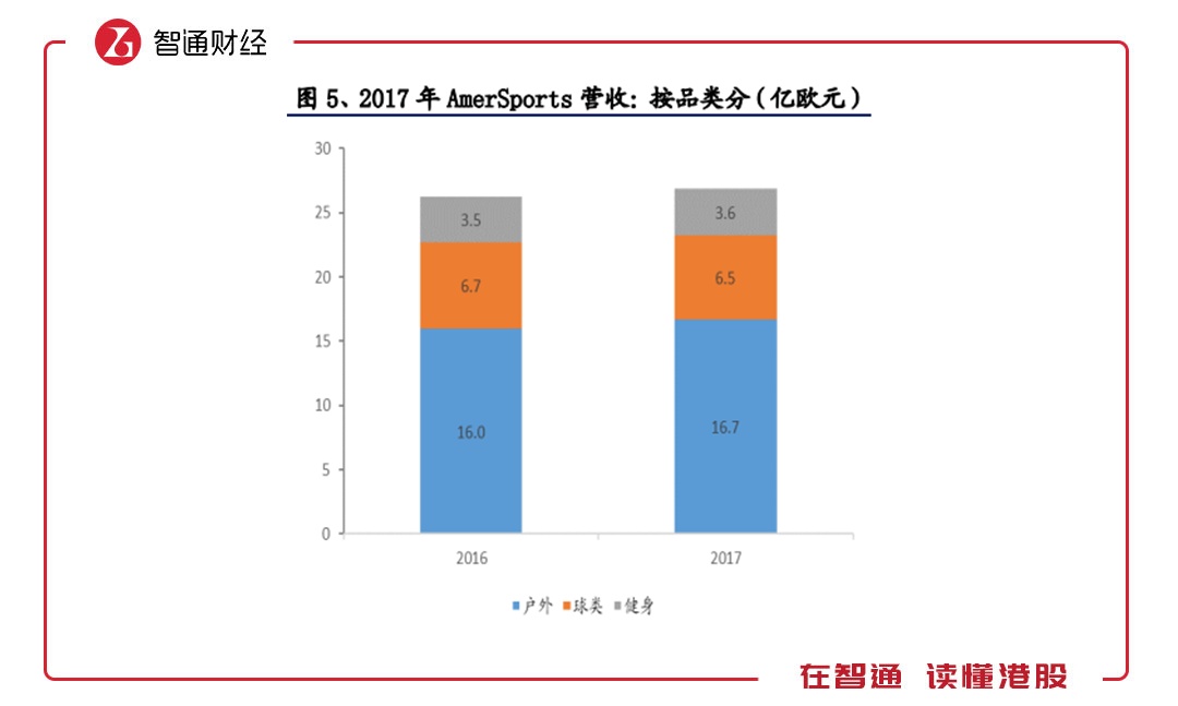 根据亚玛芬的营收结构图,公司近60%的收入来自户外产品,这恰恰能够和安踏旗下的Kolon、Sprand、Descente具有协同性。