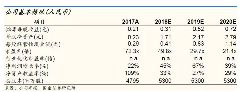 我们综合预测2018-2020年的归母净利润分别为16.5亿,27.7亿和38.4亿元,三年的年均复合增长率达到55.1%。