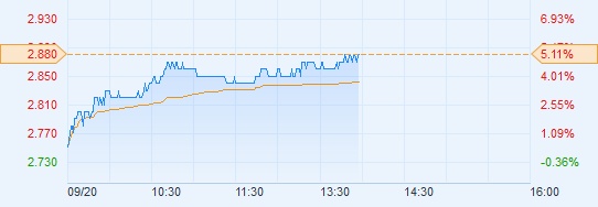 智通财经APP获悉,紫金矿业(02899)拟要约收购矿业公司Nevsun,今日延续上涨。截至13:55,涨5.11%,报2.88港元,成交额4733万港元。