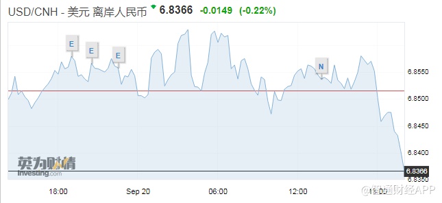 截至发稿,离岸人民币兑美元收复8.4关口,报6.8366,涨149点子或0.22%。