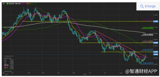 纽元/美元是表现相对不那么突出的美元货币对,但因早间新西兰公布的GDP数据表现强劲,新西兰利率加快上扬,目前纽元/美元进一步明确地突破了阶段性上行支点,未来轧空可能扩大,如果能突破下一个阻力位——尤其是0.6700区间,那或将令目标位进一步上调,例如上调至从高位0.7400跌至另一个重要区间0.6850的这轮抛售的38.2%回撤位。