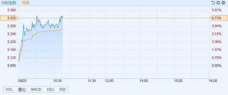 智通财经APP获悉,促消费重磅文件出台,长城汽车(02333)AH股均上涨,,截至10时45分,涨4.72%,报价5.32港元,成交额1.55亿。
