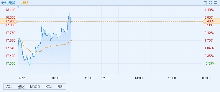 智通财经APP获悉,与大众合资在中国生产MAN卡车,中国重汽(03808)股价续涨,截至11时04分,涨3.46%,报价17.96港元,成交额8111.79万。