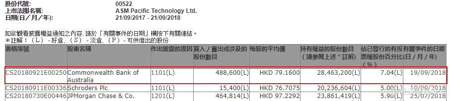 智通财经APP获悉,根据联交所资料显示,澳洲联邦银行于9月19日增持ASM太平洋(00522)49万股,每股作价79.16元,总值3868万元,最新持股量增至7.04%。