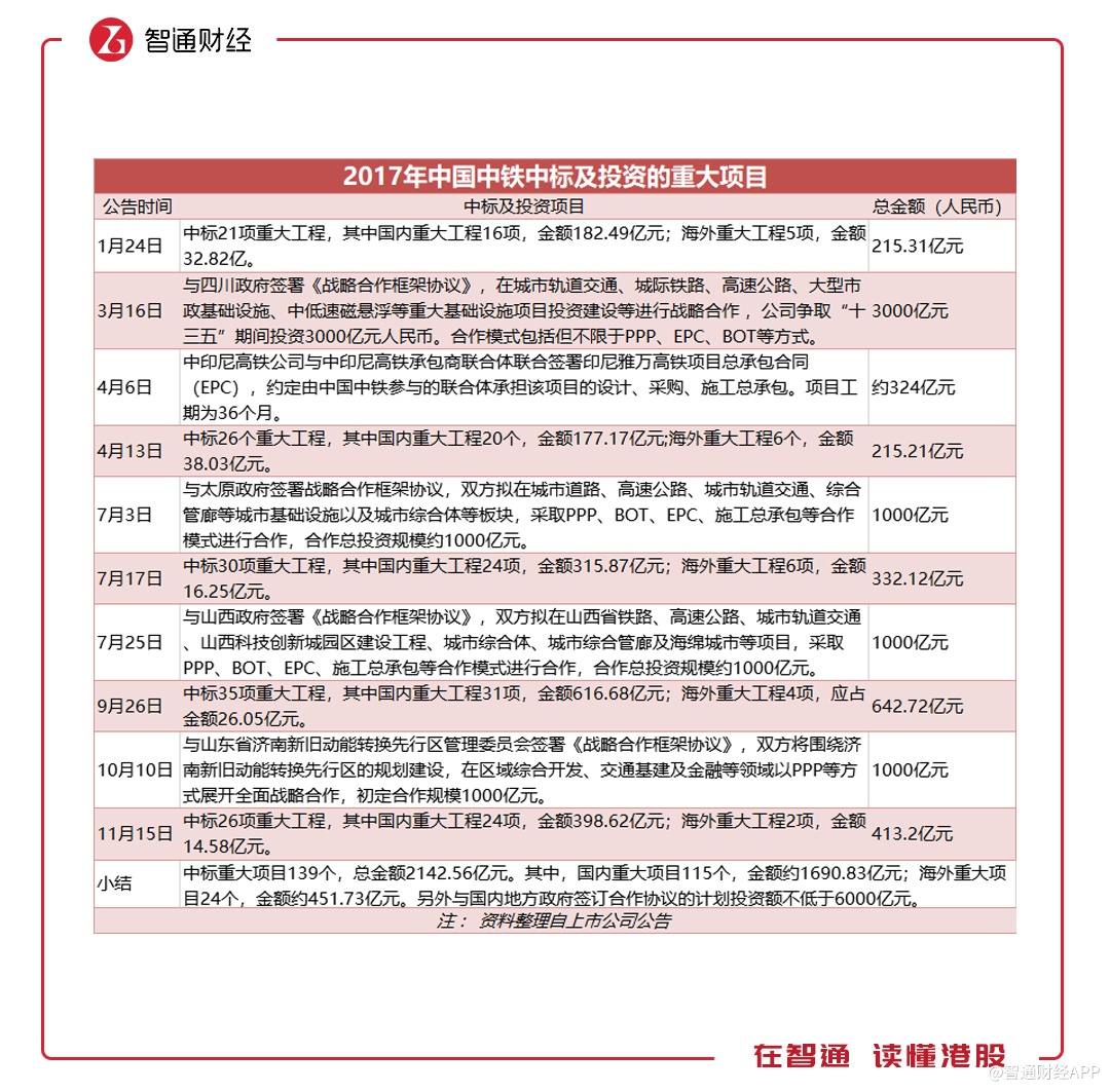 今年年初至9月底,中国中铁共披露中标的重大项目126个,项目总金额2505.57亿元,超过去年全年所披露的重大项目金额。而这是在海外重大项目数量及金额明显减少的情况下取得的,反映国内的基建需求依然强劲。这些中标的重大项目对中国中铁来说也意味着未来可能释放的巨大收入增长空间。