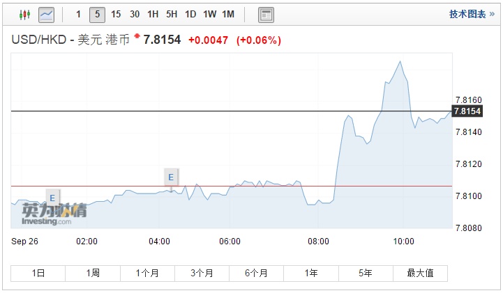 智通财经APP获悉,港汇继续大幅波动,继上周五大升500点子,一度穿7.8大关后,中秋假期过后,港汇今早跌幅逾0.1%,创去年12月以来最大跌幅,现在跌幅有所收窄,截至北京时间11点14分,港元跌0.06%,报7.8154。