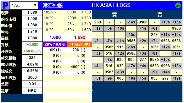 智通财经APP获悉,香港SIM卡及充值券销售商港亚控股(01723)将于9月27日挂牌,上市前夕,据辉立交易场资料显示,暗盘收报1.68元,较招股价1.00元涨0.68元,涨68%。每手2000股,不计手续费,每手赚1360元。