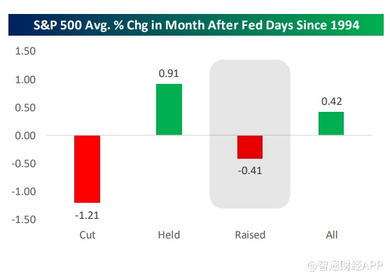 智通财经APP提醒投资者,从历史数据来看,即便股市在加息后数日内保持平稳,也切勿掉以轻心。