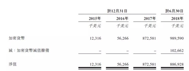 图|比特大陆招股说明书中显示的加密货币减值准备(来源:比特大陆招股说明书)
