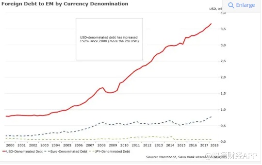 自金融危机以来,过剩的流动性支撑着全球经济增长,并流向新兴市场国家,导致债务增加。据智通财经APP了解,在此期间,以美元计价的债券增加了152%,即资金额超过2万亿美元。