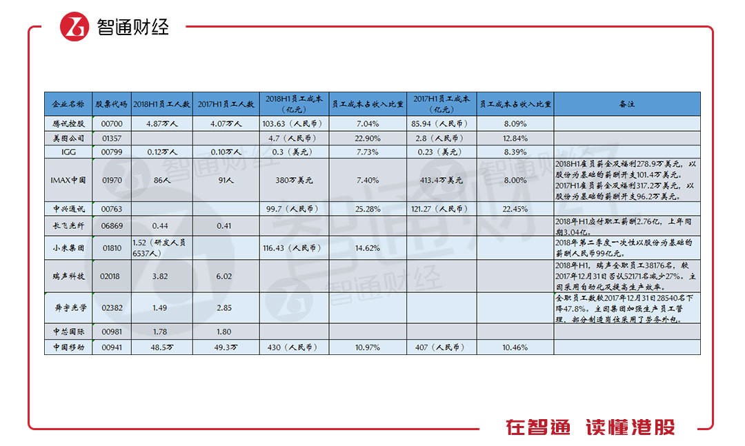 与此同时,TMT行业也是技术升级的代名词,比如瑞声科技(02018)在今年上半年加强自动化生产能力及提高生产销量,公司员工较上年同期减少了逾2万人,但公司中期营业收入并未受到较大影响。