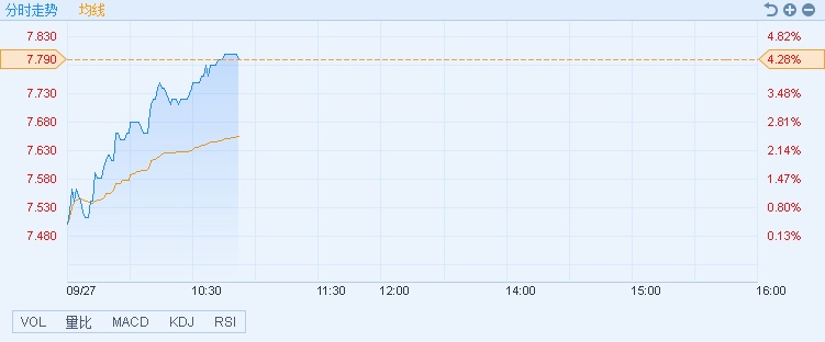 智通财经APP获悉,近日发改委传出“加码基建”的信号后,A股港股基建板块集体强势反弹,中国中铁(00390)股价续涨,截至10时51分,涨4.28%,报价7.79港元,成交额1.27亿。
