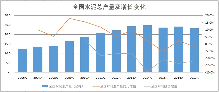 十三五规划中,中央明确表示GDP增长6.5%以上,固定资产投资增速仍会保持增长。预计十三五期间,水泥行业产量或有小幅下降,但幅度非常有限。