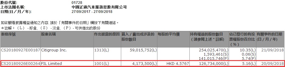智通财经APP获悉,根据联交所资料显示,富达于9月20日增持正通汽车(01728)417万股,每股作价4.58港元,总值约1909.86万港元,最新持股量约为1.26亿股。
