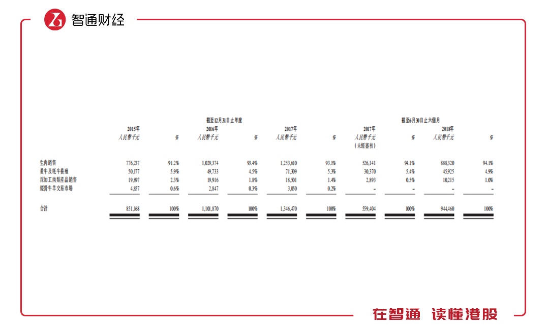 截至2018年6月30日止6个月,公司生肉销售额达到8.88亿元,占到公司总收入的94.1%。