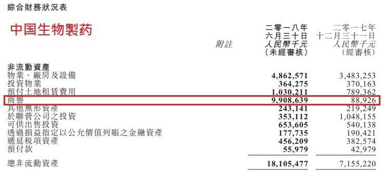 要留意中生制药的非流动资产多了一项达99亿人民币的巨额商誉。这究竟是什么呢?商誉是以高于账面值收购目标公司而产生的差价。假设公司A以10亿收购帐面值3亿的公司B,收购后那3亿固然会并入公司A的资产负债表,至于“多付”的7亿亦会以商誉形式进入公司A的资产负债表的资产项。我之所以要引号标示“多付”,是因为这“多付”仅是以会计而言的,实际上很多无形资产都不能以会计项目来表达。而中生制药这99亿人民币的巨额商誉,显然绝大部分是花了129亿港元收购北京泰德24%股权而来的。一般来说,药厂最重要的资产是知识产权和生产技术,物业厂房等有形资产反而不多,这便形成了收购后的巨额商誉了。若未来需作商誉减值,这便对利润带来负面影响,不过因为这只是非现金支出,与折旧一样,对现金流的影响反而是正面的。