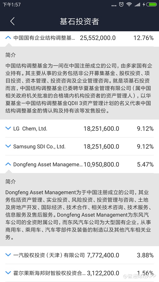 这几家基石有三星、LG都是全球市场新能源领域响当当的角,还有东风集团及两家股权投资基金。