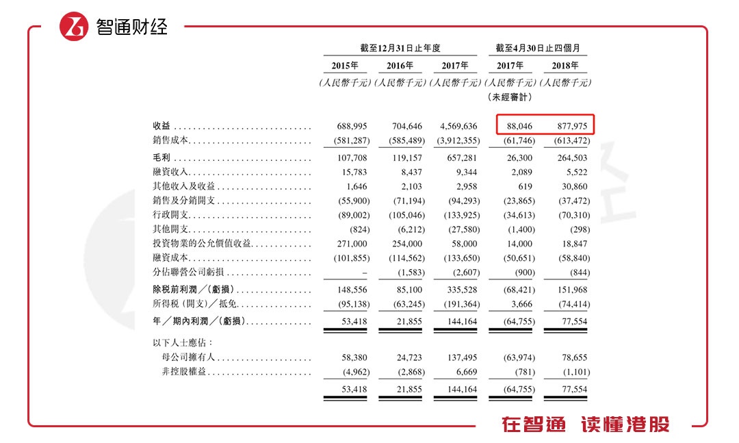 此外,截至2018年前4月,来自大发融悦华庭的销售毛利率高达30.4%,占同期物业开发及销售总收益约86.7%。