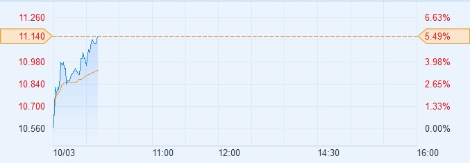 智通财经APP获悉,比亚迪电子(00285)今日震荡上扬,盘中涨幅超5%。截至10:08,涨5.49%,报11.14港元,成交额1988万港元。