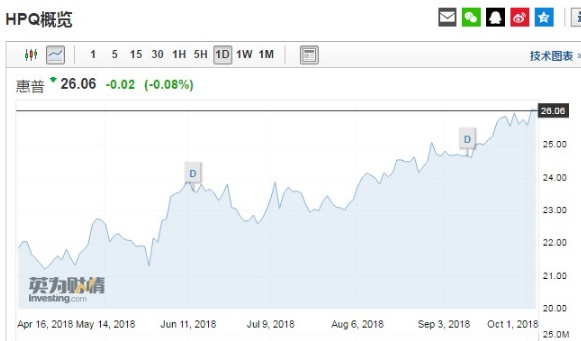 智通财经APP获悉,在惠普(HPQ.US)宣布将季度股息提高15%至0.1602美元每股之后,其盘后股价一度涨近5%,截至发稿,升2.38%报26.68美元。