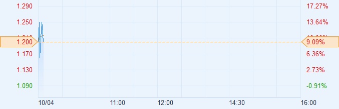 智通财经APP获悉,新昌创展控股(01781)今日上市大幅高开,盘中涨幅超10%。截至9:33,涨13.64%,报1.25港元,成交额1444万港元。