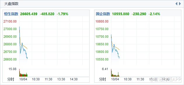港股异动︱恒生国企指数跌超2.1% 恒指跌1.7%