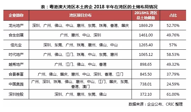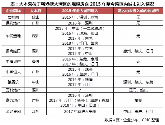 粤港澳大湾区所涵盖的佛山、深圳、广州恰好是目前房企龙头——碧桂园、万科和恒大的发源地。事实上,华南区域也是诸多老牌房企的大本营,许多企业都是以此为原点,开始了全国化规模扩张,如保利、华润、招商、富力等等。