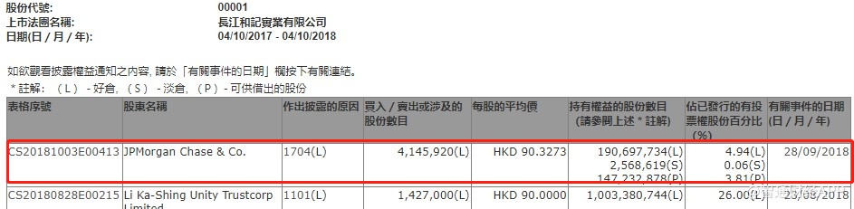 智通财经APP获悉,根据香港联交所资料显示,摩根大通于9月28日减持长和(00001)415万股,每股作价90.3273港元,总值约3.75亿港元,最新持股量降至4.94%。