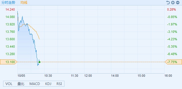 截至10时18分,中兴通讯(00763)跌7.61%,报13.12港元,成交额为3478.53万。