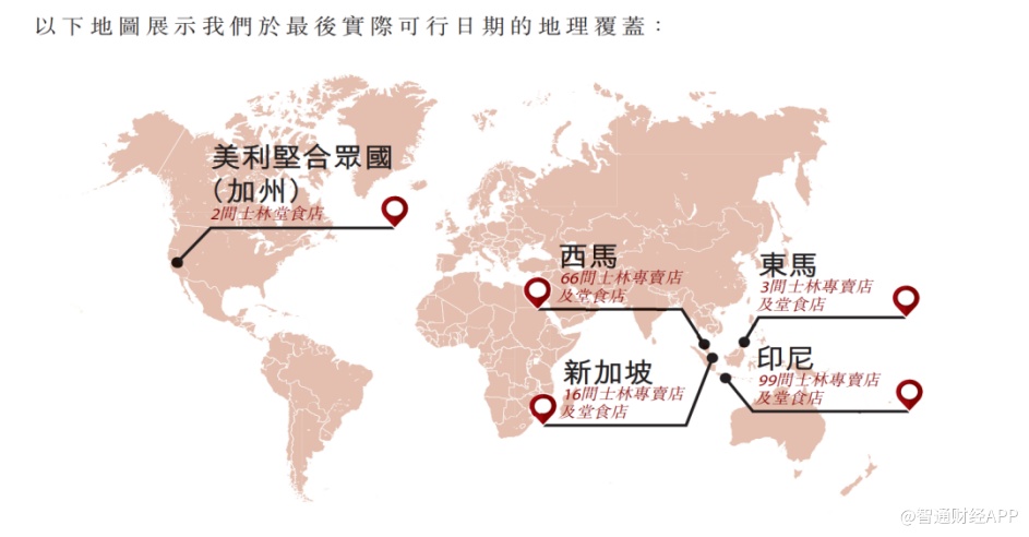 招股书显示,快餐帝国于最后实际可行日期公司在上述市场拥有23家自营及162家非自营店,这186家门店中有69家位于马来西亚、99家位于印度尼西亚、16家位于新加坡、2家位于美国。根据Frost & Sullivan报告,马来西亚及新加坡的士林专卖店及堂食店产生的销售额占各国于2017年的快餐市场交易总额分别约0.8%及0.7%。