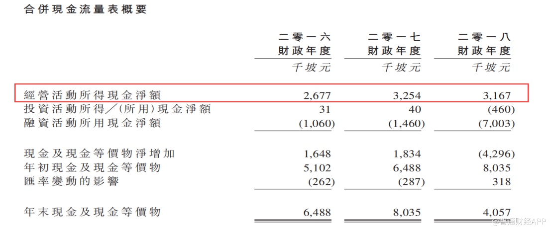 事实上,快餐帝国不仅保持着较强的盈利能力,其盈利质量也有保障。公司2016财年至2018财年经营活动所得现金净额分别为267.7万元、325.4万元及316.7万元。