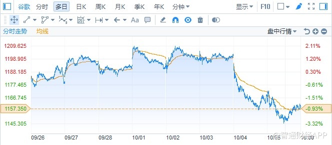 10月5日,谷歌收报1157.35,跌0.93%或10.84。