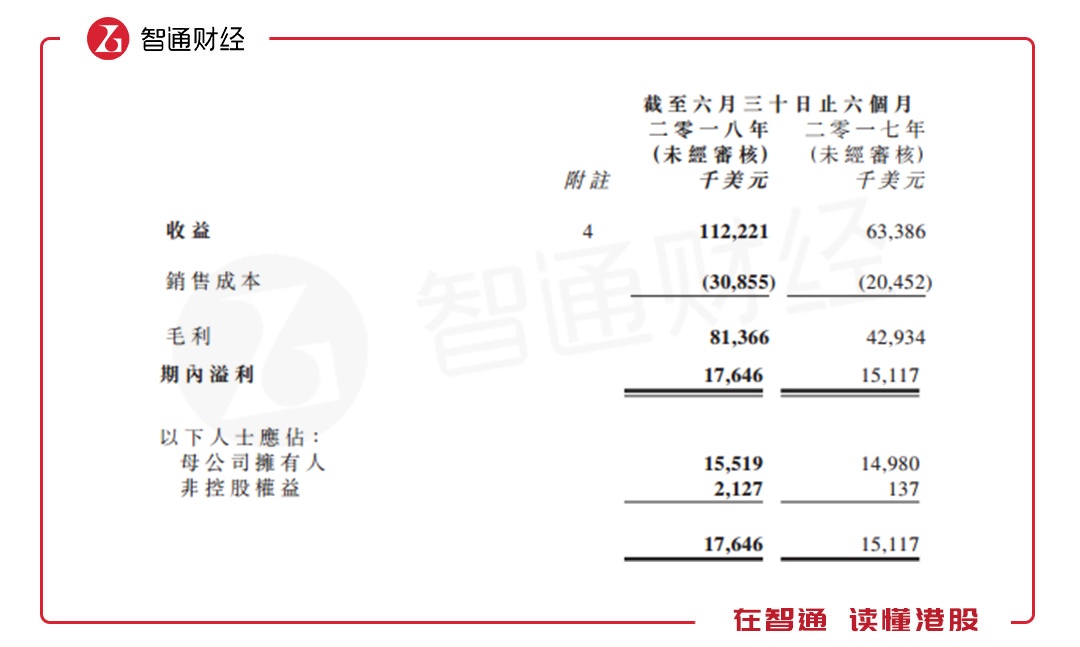 远的不说,就以今年中期为例,该公司收益1.12亿美元(单位下同),同比增长77%;净利润1552万,同比增长3.3%。毛利约为8140万,较2017年同期的约4290万增长89.7%。毛利率为72.5%,高于去年同期的67.7%。