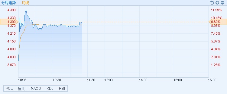 智通财经APP获悉,中远海能(01138)A股涨停,H股跟涨,截至11时20分,涨9.69%,报价4.3港元,成交额6573.38万。