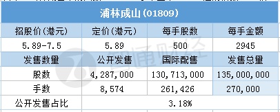智通财经APP获悉,10月08日,浦林成山(01809)配售结束。本次配售招股价区间为5.89-7.50港元,最终定价5.89港元,每手2945港元。