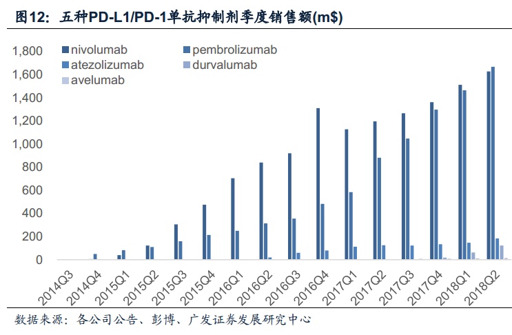 PD-(L)1 单抗抑制剂成为免疫治疗的明星,五大上市产品年销售额已接近 100 亿美元