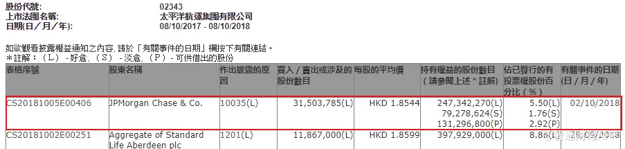 摩根大通增持太平洋航运(02343)3150万股,每股作价1.85港元