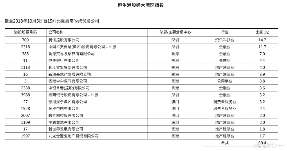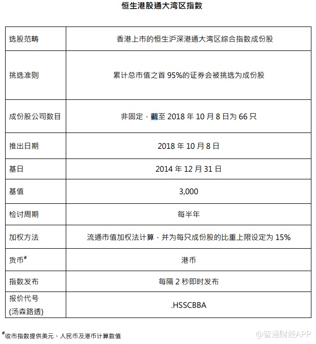 智通财经APP获悉,10月8日,恒生指数公司推出恒生港股通大湾区指数。该指数旨在反映于香港上市并主要于粤港澳大湾区营运的公司表现,而这些公司须符合港股通交易资格。
