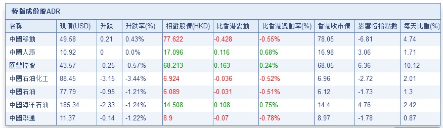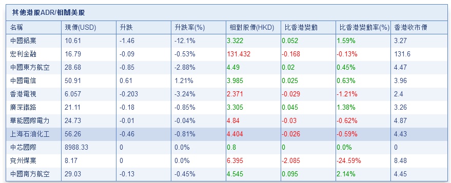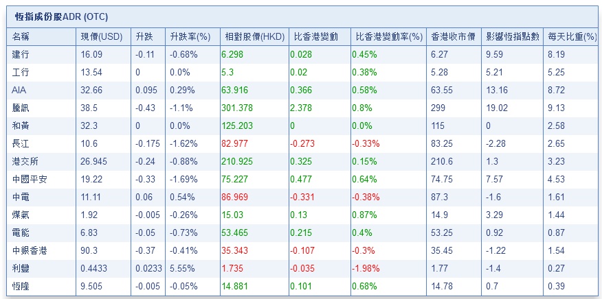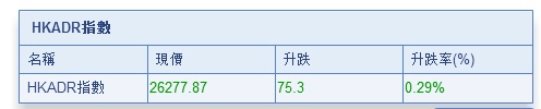 智通财经APP获悉,隔夜美股涨跌不一,港股ADR指靠稳,按比例计算,收报26277.87点,升75.3点,升幅0.29%。