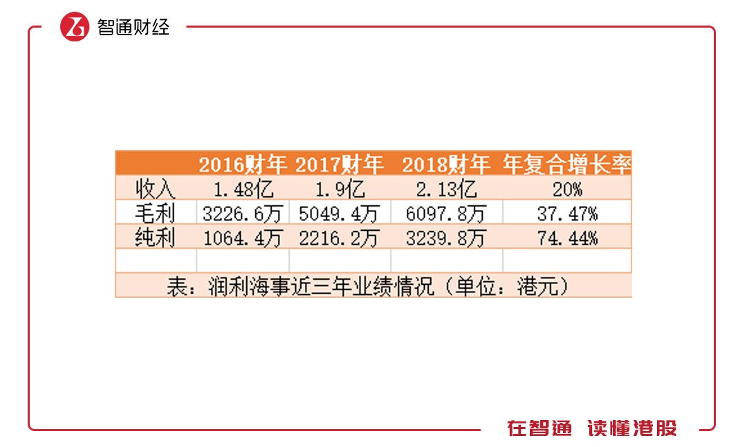 润利海事2016-2018财年的毛利年复合增长率超37%。得益于毛利的增长及纯利率从2016财年的10.2%提升至2018财年的17%,该公司的纯利年复合增长率为74.44%,纯利高速增长。
