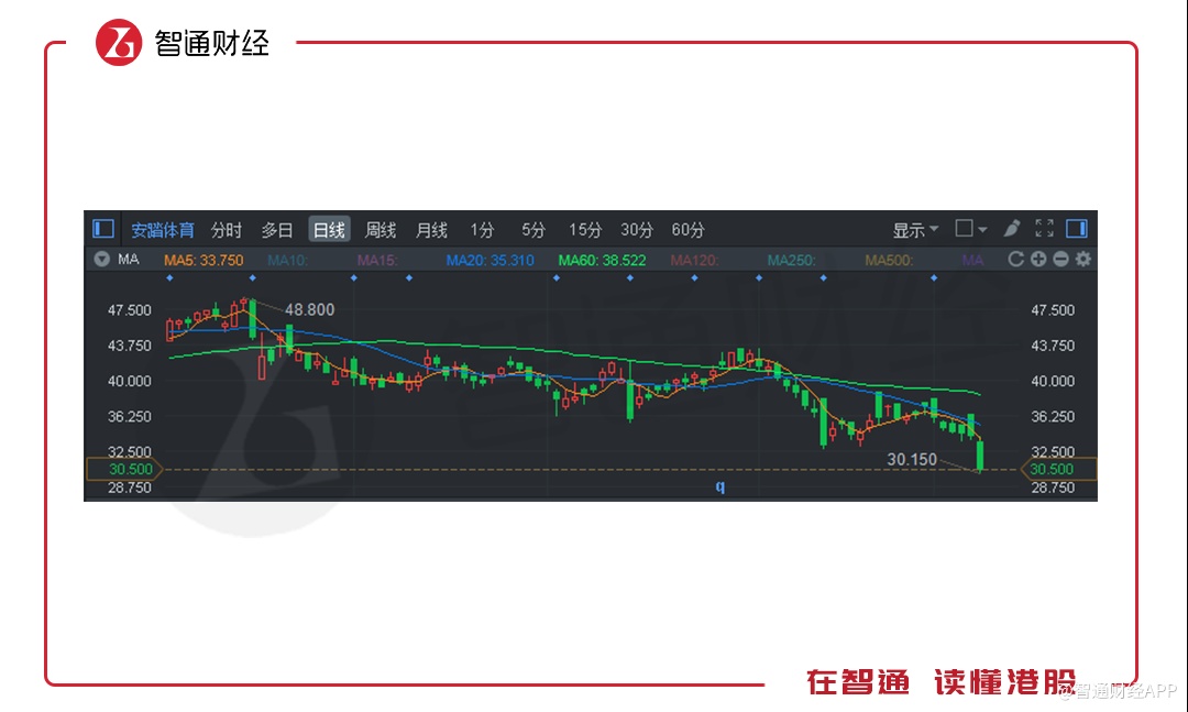 至于原因,看看中报季之后港股体育用品板块个股的股价走势。老大哥安踏(02020)在9月公布拟斥资近47亿欧元收购芬兰上市体育用品公司Amer Sports之后,没有获得投资者的“好脸色”,股价在近期不断刷新年内新低,近两个月已经跌去29.12%。