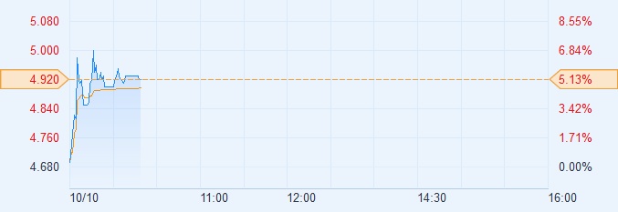 智通财经APP获悉,丘钛科技(01478)今日延续反弹,盘中最高涨至5港元。截至10:16,涨5.34%,报4.93港元,成交额782.97万港元。