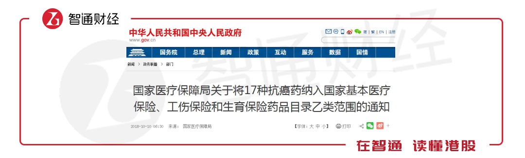 10月10日一早,智通财经APP就看到,国家医疗保障局印发了《关于将17种抗癌药纳入国家基本医疗保险、工伤保险和生育保险药品目录乙类范围的通知》,将阿扎胞苷等17种药品通过谈判纳入《国家基本医疗保险、工伤保险和生育保险药品目录(2017年版)》乙类范围,并确定了医保支付标准。