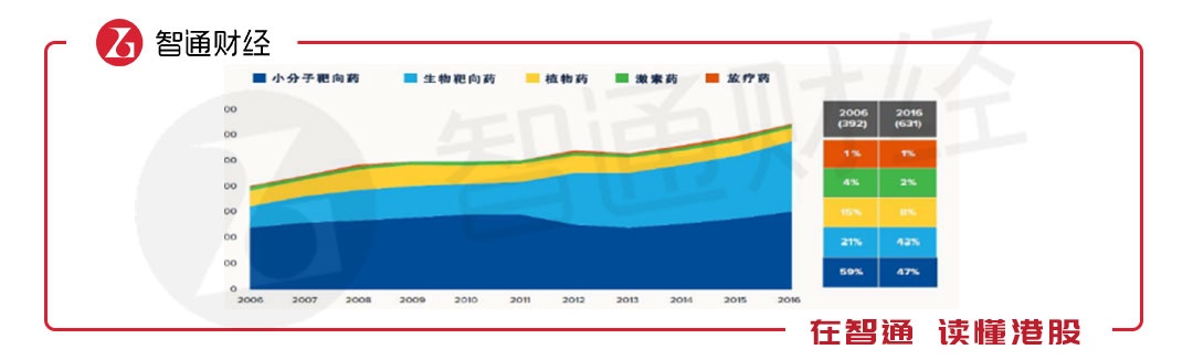产生这中原因,主要是因疗效所决定的。靶向药较传统化疗药展现出优异的疗效,一批小分子靶向药无疾病进展生存期(PFS)显著优于传统的化疗和安慰剂。这也是为什么新上市的未盈利生物药企基本上都是小分子靶向药物“玩家”。