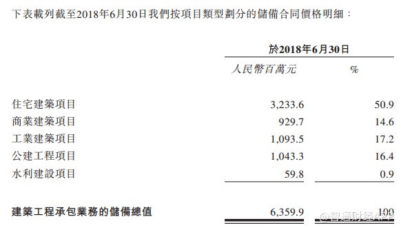 今年上半年,公司新建筑项目数量245个,新项目净价值为64.51亿元。截至2018年6月30日,鸿翔建设拥有合同储备价格约63.6亿元,其中已动工未完成在建项目的合同价格49.06亿元,这部分将在未来6个月至3年期间确认为收益,未动工的储备项目通常会在6个月至三年内于客户获得施工许可证是确认为收益。