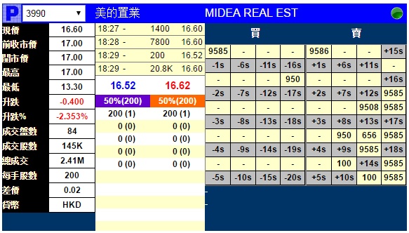 智通财经APP获悉,美的置业(03990)明日(10月11日)将在香港挂牌,上市前夕,据辉立交易场资料显示,暗盘收报16.6港元,较招股价17港元跌0.4港元,跌2%。每手200股,不计手续费,每手亏80港元。