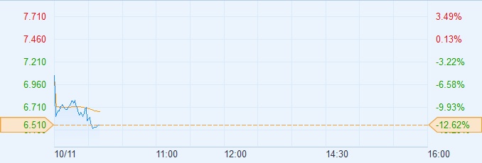 智通财经APP获悉,美科技股大跌,金蝶国际(00268)今日大幅下跌,创近7个月新低。截至10:06,下跌13.02%,报6.48港元,成交额2.24亿港元。