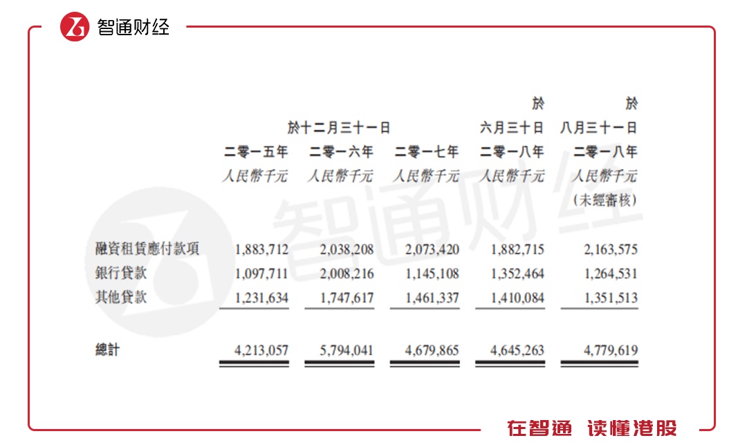 此外, 道生于2015年、2016年及2017年12月31日以及2018年6月30日,总负债分别为44.68亿元61.71亿元、59.95亿元及59.67亿元。于上述日期公司总负债的主要组成部分为计息银行及其他借款,分别占总负债的94.3%、93.9%、78.1%及77.8%,同样有稳定减少的趋势。