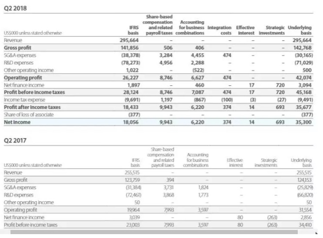2018年Q1业绩表中,收入同比增长23%,达到了2.44亿美元,但是利润却下跌了25%,仅剩1740万美元。究其原因,主要在于苹果订单的影响。2018年Q2,其收入为2.96亿。